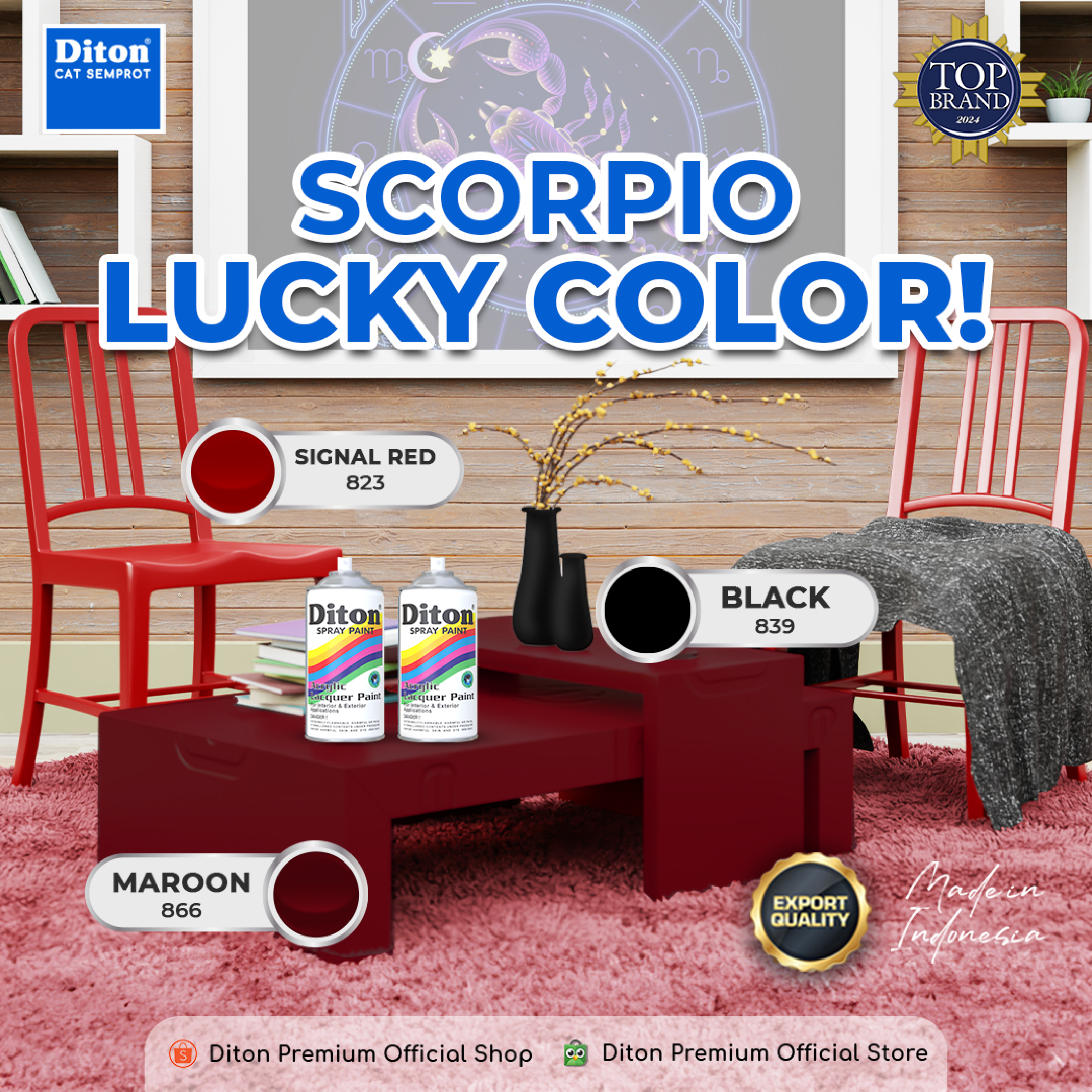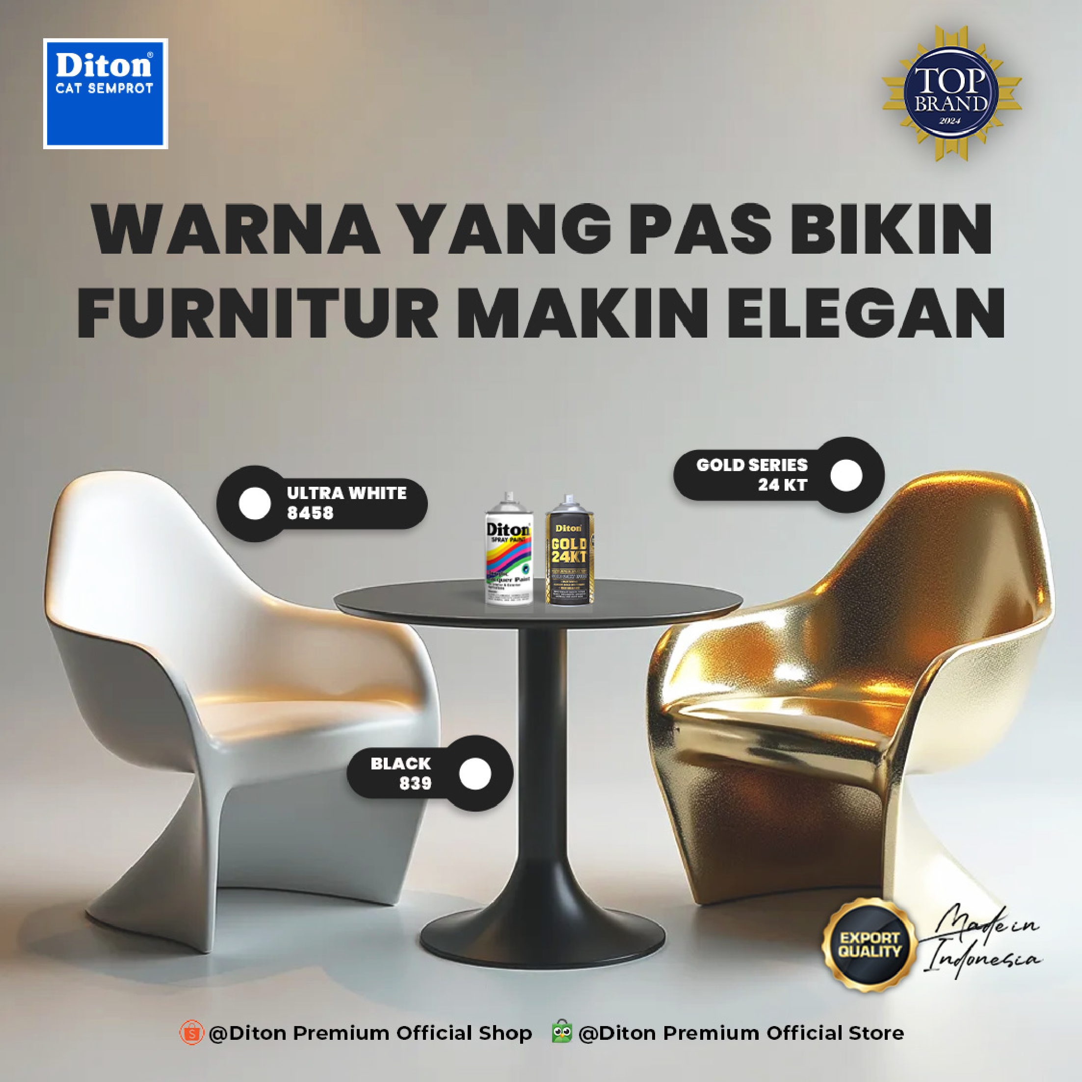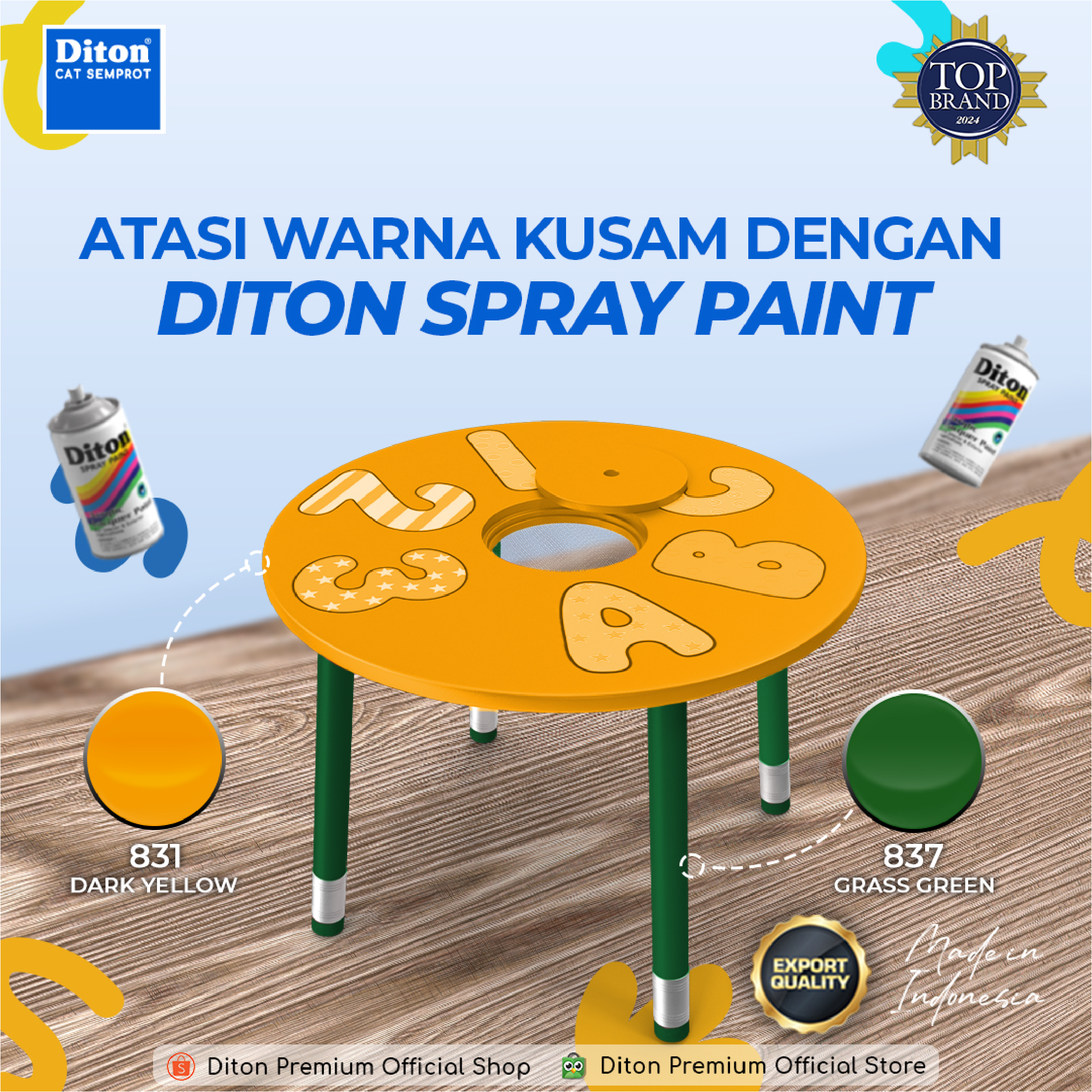Buat dekorasi rumah, perabotan, atau proyek pribadi dengan pilihan warna yang lengkap dari Diton Spray Paint.
