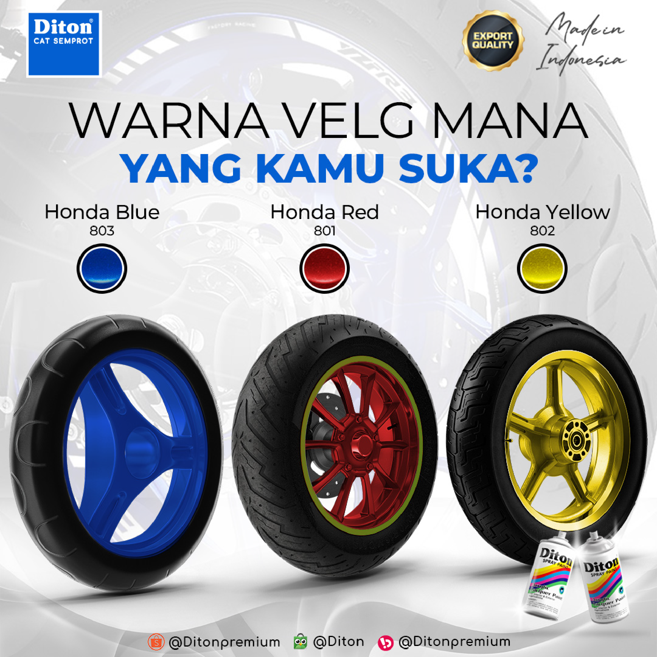 Ubah kendaraan kesayanganmu dengan sentuhan warna baru yang kuat dan tahan lama. Diton Spray Paint memberikan hasil akhir yang mulus