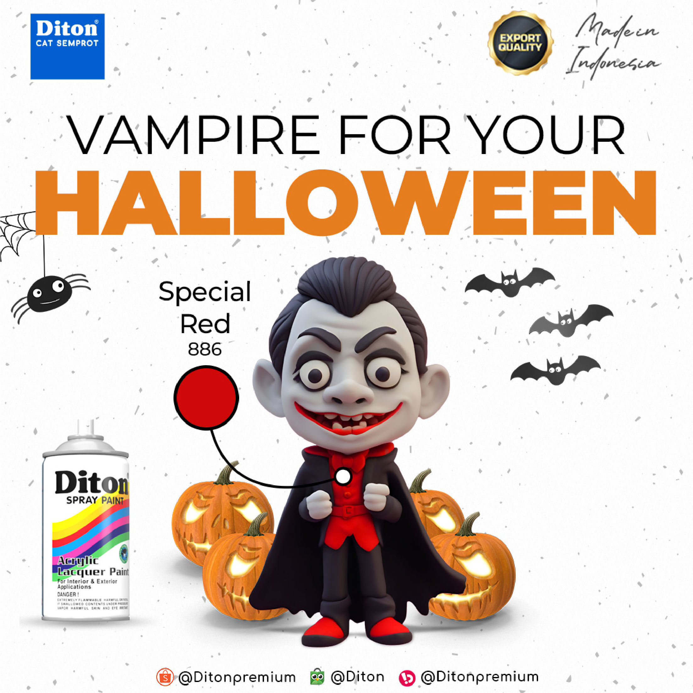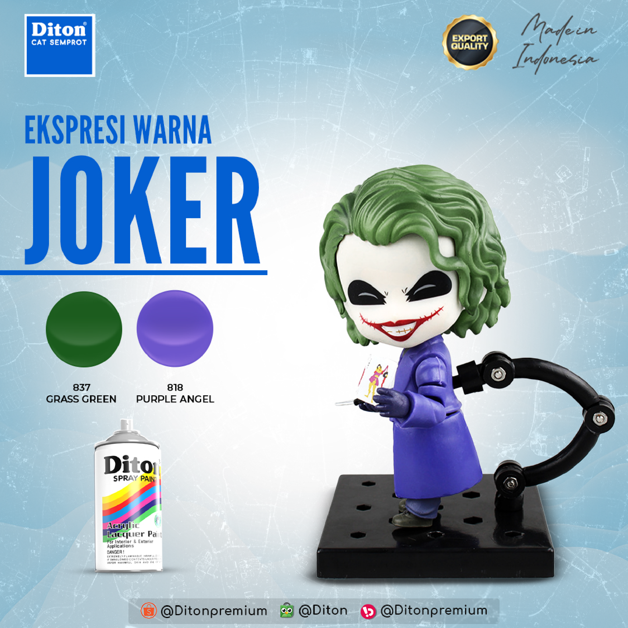 Diton Spray Paint Adalah cat semprot akrilik serbaguna yang hadir dengan lebih dari 100 warna untuk memenuhi segala kebutuhan kreatifmu!
